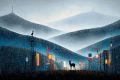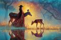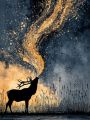 Midnight Rider: A Fantastical Journey Through Water-Splashed Hues