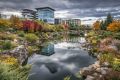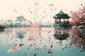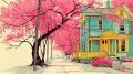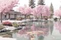 Cherry Blossoms and Urban Reflections: A Serene Pathway Scene