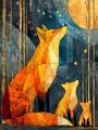 Fractured Winter Wonderland: Cubist Sierra Red Fox Kits Amid Snowflakes