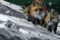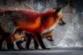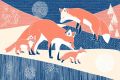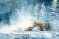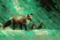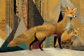 Cubist Winter Wonderland: A Sierra Red Fox Family in Snow