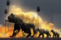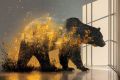 Enchanted Evening: A Bear and Human Share a Moment Under Amber Skies