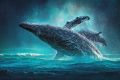 Majestic Leap: Humpback Whale Calf and Mother in the Pacific