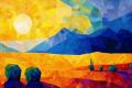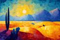 Swirling Sands and Geometric Cacti Under a Mosaic Sunset