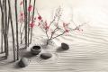 Tranquil Monochrome Zen Garden: Bamboo, Cherry Blossoms, and Raked Sand