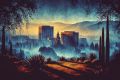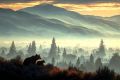 Dawn Breaks Over San Jose with a Majestic Bear Silhouetted Against Misty Mountains