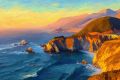 Enchanting Golden Sunset at Big Sur Overlooking the Pacific Waves