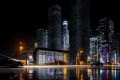 Vivid Nightlife: Colorful Intersection Under Vibrant Urban Glow