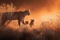 Twilight Embrace: A Mountain Lion Mother Grooms Her Cubs