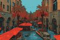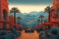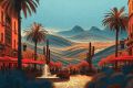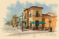 Bustling Cafe Life in San Pedro Square Illustrated in Rustic Charm