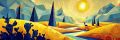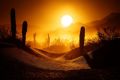 Amber Dusk: Geometric Cacti and Swirling Dunes Under a Minimalist Sun