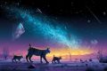 Celestial Whispers: A Cat Silhouetted Against a Shimmering Starry Night