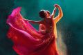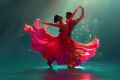 Dance of Whispers: An Enigmatic Silhouette in Resplendent Red