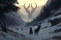 Enchanted Winter Realm: Majestic Stags Under a Mystical Sky