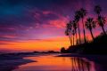 Golden Sands and Silhouetted Palms Under a Radiant Sunset