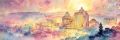 Golden Hues of Dusk: A Watercolor Vista Over San Jose