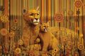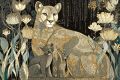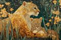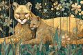 Enchanted Wilderness: Mountain Lion and Cubs in Klimt-Inspired Splendor