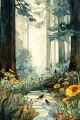 Sunlit Whispers in the Redwood Forest: A Watercolor Journey