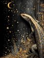 Celestial Dreams: A Garter Snake Amidst a Starlit Golden Wonder