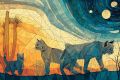 A Prismatic Winter Night: Bobcat Family Navigates a Cubist Desert