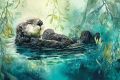 Mother's Embrace in the Kelp: A Sea Otter and Her Pup at Monterey Bay