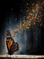 Alchemy of Flight: A Monarch Butterfly Amidst Golden Stardust