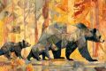 Winter Hunt in Cubist Colors: Bobcat Mother and Kittens Amid Icy Trigons