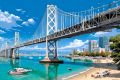 A Midnight Symphony: Illuminated Bay Bridge and Its Mirror Reflection