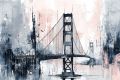 Whispers of Fog: The Golden Gate Bridge in a Dreamy Wash of Navy and Blush