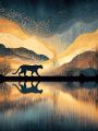 Enchanted Wilderness: Gold-Leaf Mountain Lions in Klimt-Style Elegance