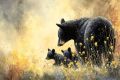 Dawn's First Light: A Black Bear Family Amidst Sierra Blooms