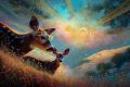 Cosmic Radiance: Deer Basking in Ethereal Golden Hour Brilliance