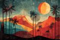 Golden Sunbursts and Teal Palm Fronds: A Retro Art Deco Fusion