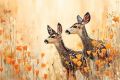 Autumn Enchantment: Mule Deer and Fawns Amidst Gilded Leaves