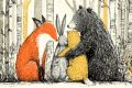 Enchanted Forest Friends: Fox, Bunny, and Bear Sharing a Tender Moment