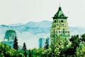 Fire and Serenity: A Watercolor Landscape at Twilight's Bloom