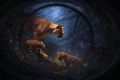 Golden Glimmers: A Majestic Sentinel and Her Cubs in Klimt-Inspired Splendor