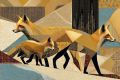 ** Cerulean Winter: The Sierra Red Fox Family in a Cubist Blizzard