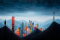 Starlit Skies Over Neon Dreams: A Midnight Cityscape