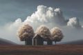 Ethereal Tranquility: Clouds and White Trees Over Mysterious Landscape