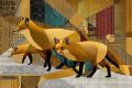 A Cubist Winter Wonderland: Sierra Red Fox and Kits Amidst Snowy Shards