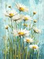 Vintage Canvas Flourishes with Daisies Against Tranquil Blue