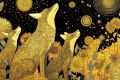 Enchanted Evening: Coyotes and Sunflowers Under Gilt Constellations