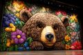 Neon Wilderness: A Mural of a Grizzly Bear Adorned with Golden Florals