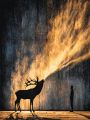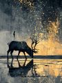 Starlit Reverie: A Majestic Elk Amidst Night's Golden Canvas