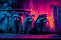Neon Nights: Raccoon Kits Exploring a Rain-Soaked San Francisco Alley
